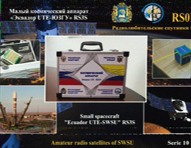 Once again the Russian crew transmitted SSTV pictures from the International Space Station. I left the W2MMD satellite station running with the tracker software set to track the ISS, and the MMTV SSTV program running to capture the images from the SDR radio. Below are some of the better images. On a high pass two images can generally be copied; on lower passes it depends on where the image transmission is at AOS. Sometimes we can get a whole image; other times only the end of one a the beginning of the next. There’s usually about a 90 pause between images when the carrier is dropped, so it’s easy but incorrect to assume that no images are being transmitted. When these passes occur, be sure to listen for the entire pass.