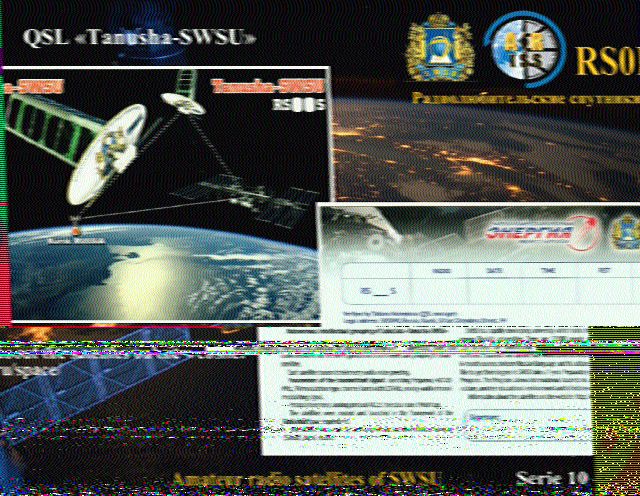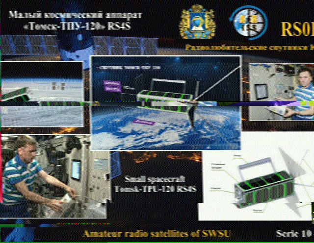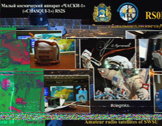 Once again the Russian crew transmitted SSTV pictures from the International Space Station. I left the W2MMD satellite station running with the tracker software set to track the ISS, and the MMTV SSTV program running to capture the images from the SDR radio. Below are some of the better images. On a high pass two images can generally be copied; on lower passes it depends on where the image transmission is at AOS. Sometimes we can get a whole image; other times only the end of one a the beginning of the next. There’s usually about a 90 pause between images when the carrier is dropped, so it’s easy but incorrect to assume that no images are being transmitted. When these passes occur, be sure to listen for the entire pass.