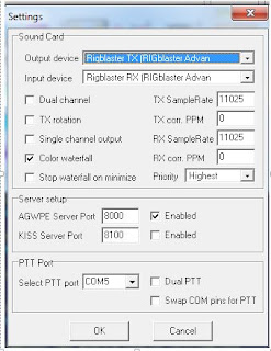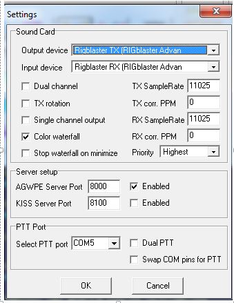 Next, open UISS on the computer, which will also open the SoundModem software. Be sure that the input and output devices are set to the respective Rigblaster settings as shown below.